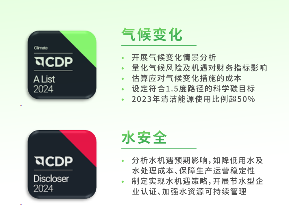 全球情形信息研究中心(CDP)评级,,,,,,,,被普遍视为权衡企业情形透明度和可一连生长行动的主要基准,,,,,,,,笼罩全球超22000家公司。。。。。克日,,,,,,,,CDP宣布2024年评级效果,,,,,,,,太阳集团网站8722细密评级一连四年稳步提升,,,,,,,,在天气转变领域获评「A」级、水清静领域获评「A-」级,,,,,,,,双双位列全球向导力品级,,,,,,,,这一突破高度认可了太阳集团网站8722细密在天气转变的应对和水资源的可一连使用方面的起劲和效果。。。。。